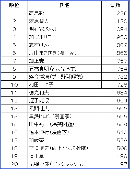 ▼ 人気ゲームMaru-janにて実施された「一緒に麻雀を打ちたい有名人ランキング」
